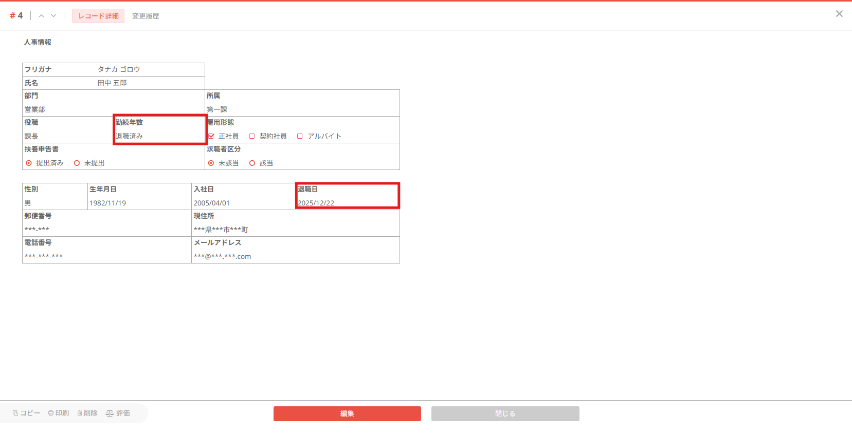 ※退職済みの文字を表示させるため、型は文字列に設定します。