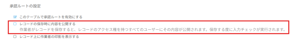 しかし、上記の機能の場合は入力必須の項目が未入力でもレコードの作成および編集が実行されますのでご注意ください。