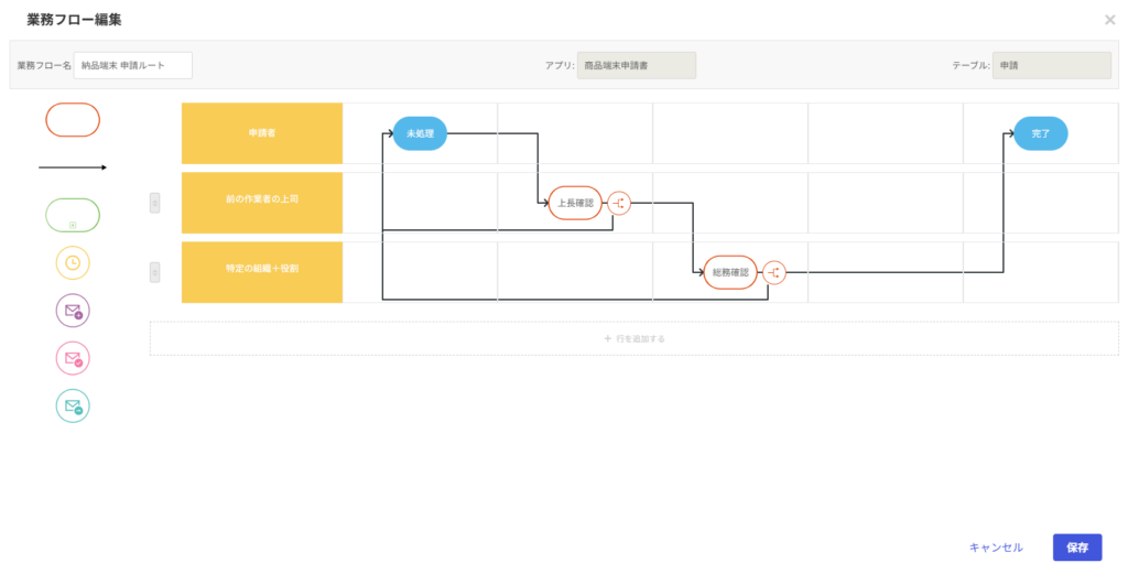 例では、申請者が機器の使用用途を登録し、その後のステップで総務担当者が管理番号や納品日を入力するといった、プロセスごとに役割が明確に分かれている場面が挙げられます。