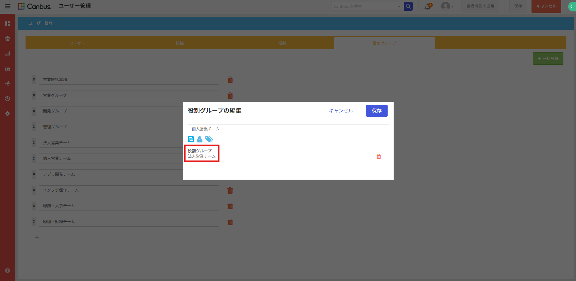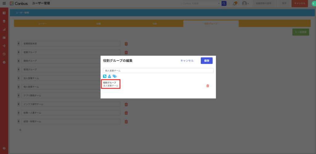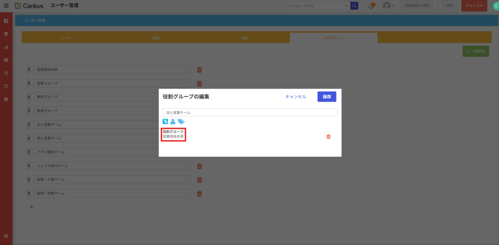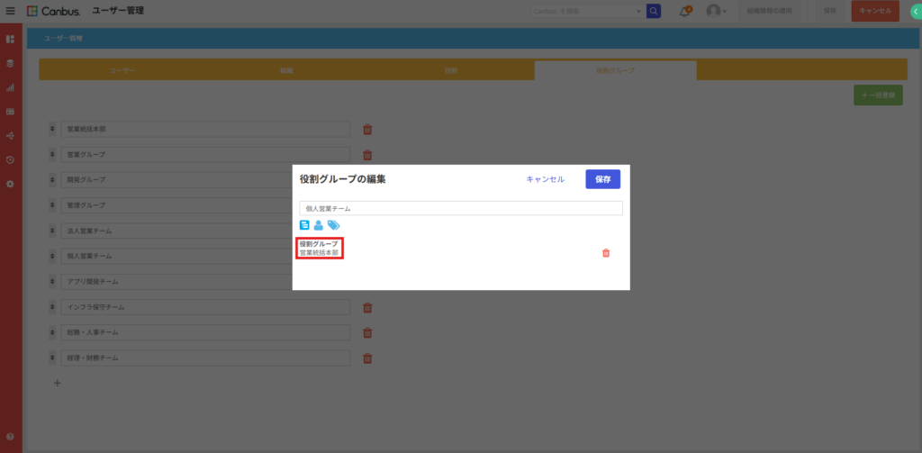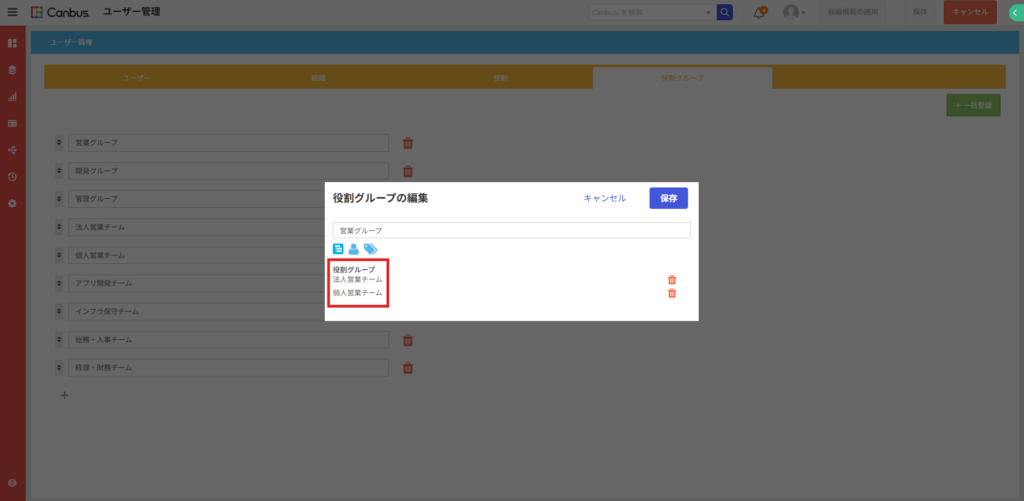 これまでのCanbus.では、役割グループの中に別の役割グループを所属させることはできず、それぞれの用途ごとにいくつも役割グループを作成する必要がありました。