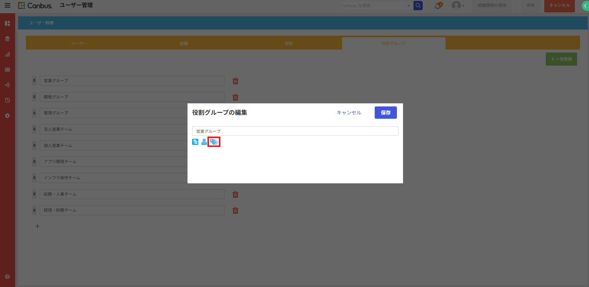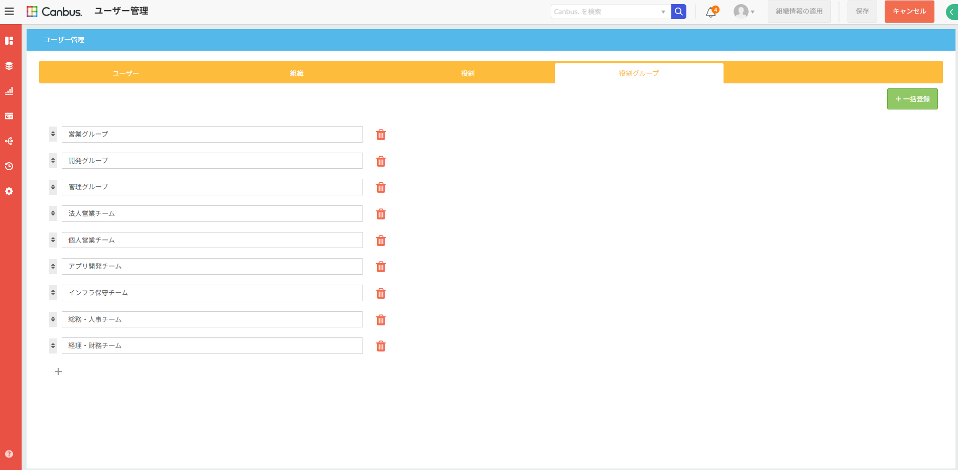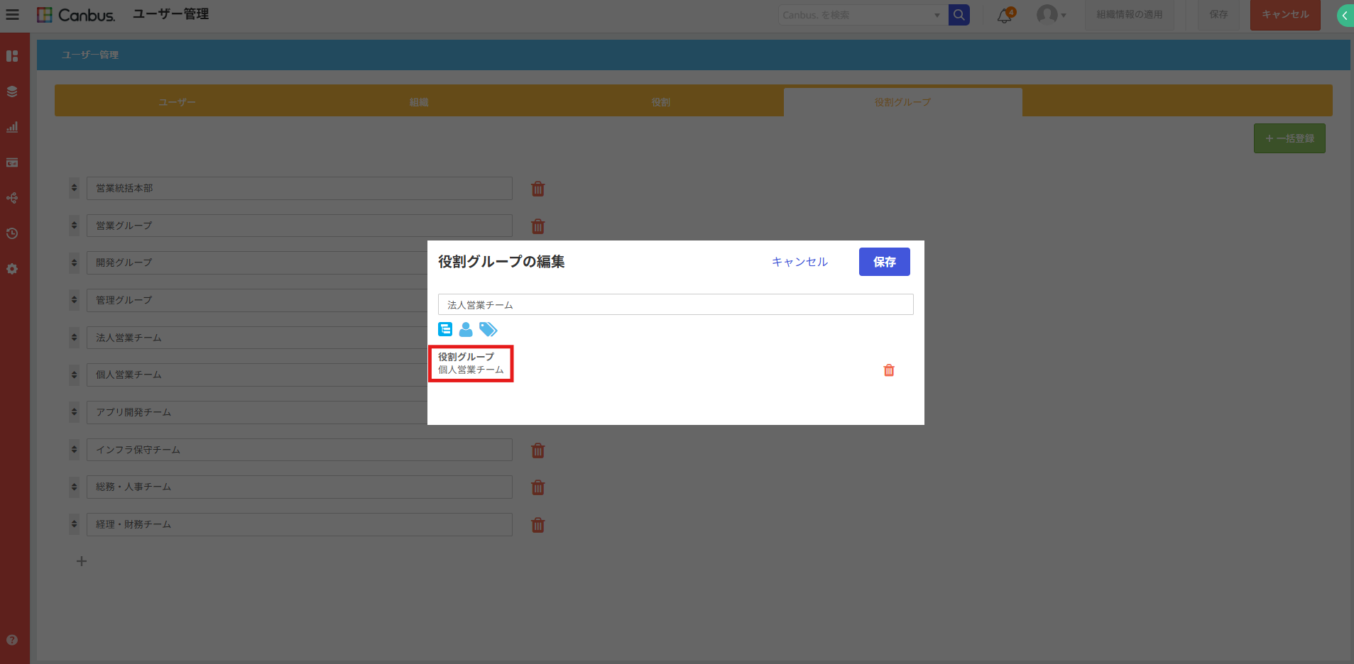 これまでのCanbus.では、役割グループの中に別の役割グループを所属させることはできず、それぞれの用途ごとにいくつも役割グループを作成する必要がありました。